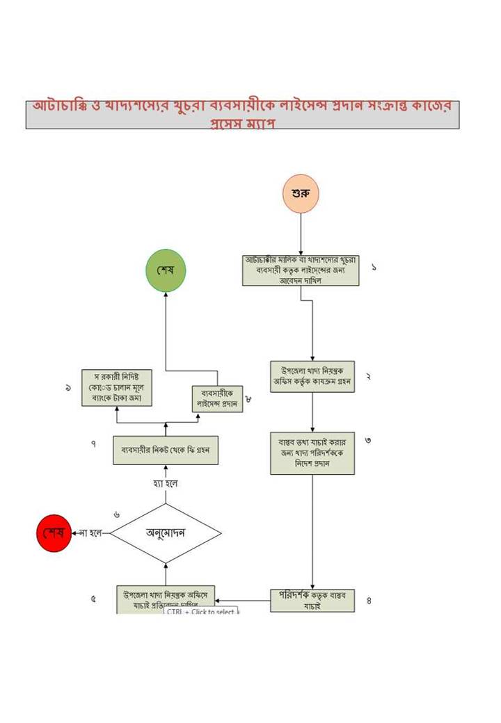 | ৪ | আটাচাক্কি ও খাদ্যশস্যের খুচরা ব্যবসায়ীকে লাইসেন্স প্রদান সংক্রান্ত প্রসেস ম্যাপ | দেখুন |