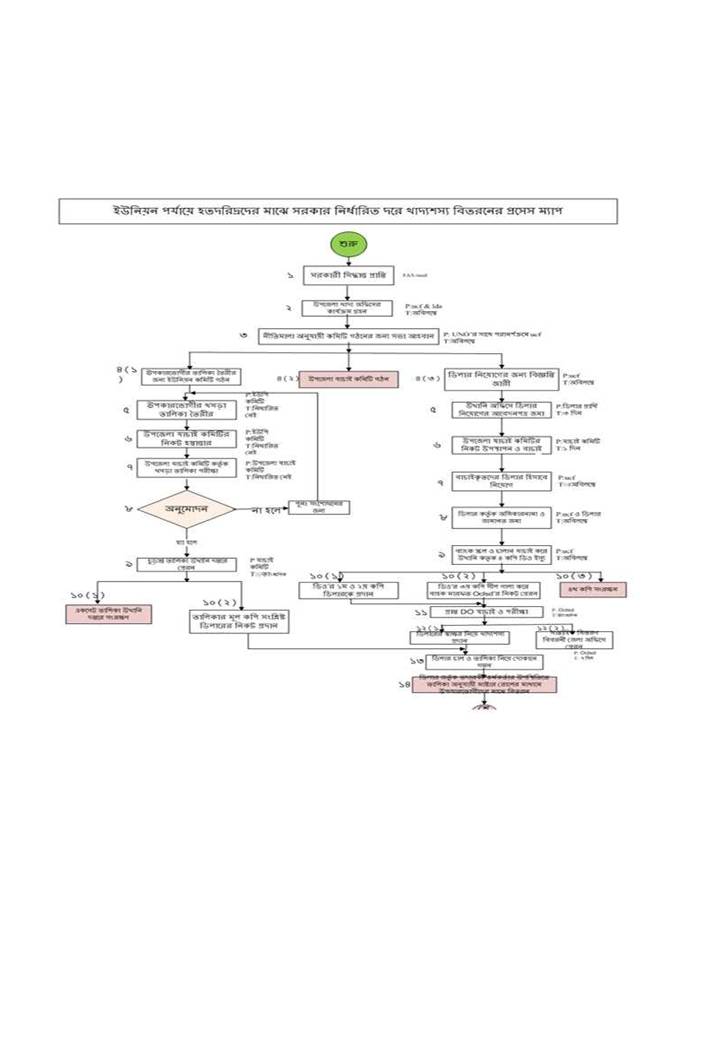 | ২ | ইউনিয়ন পর্যায়ে হতদরিদ্যদের মাঝে সরকার নির্ধারিত দরে খাদ্যশস্য বিতরনের প্রসেস ম্যাপ | দেখুন | |